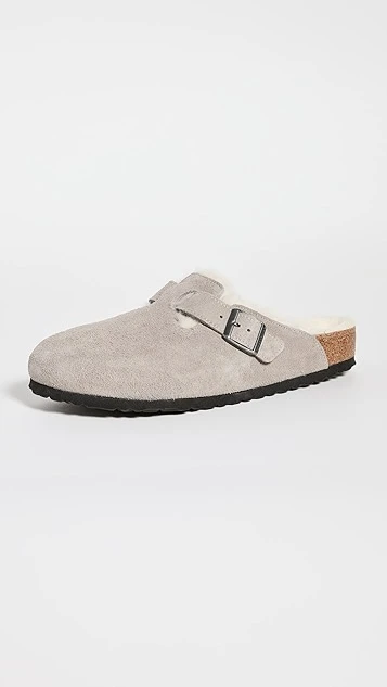 Keep out the winter chill with these suede Birkenstock sandals, which are lined with warm shearling and designed for maximum comfort.