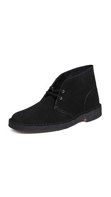 A jet-black version of Clarks’s signature desert boots, featuring a traditional suede upper and gum-rubber sole.