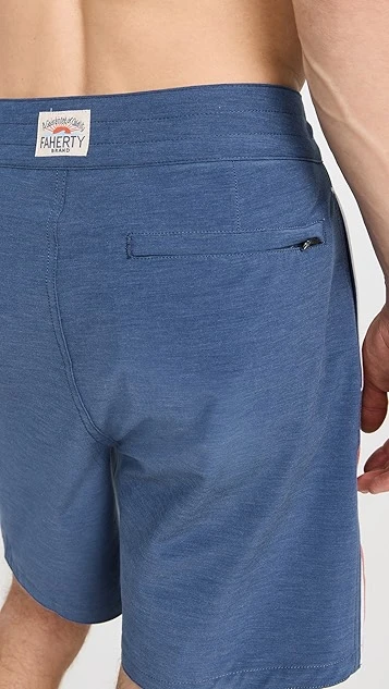 A throwback option for beach days, these Faherty boardshorts are detailed with contrast stripes at the outseam, and feature the convenient addition of a zip back pocket.
