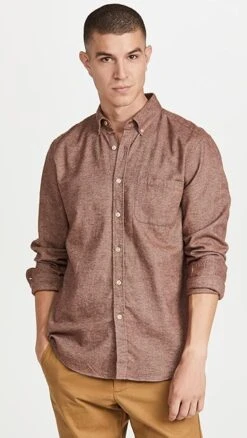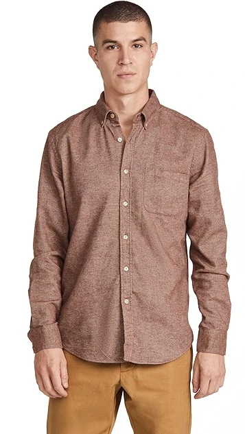 - Button-down collar and button placket