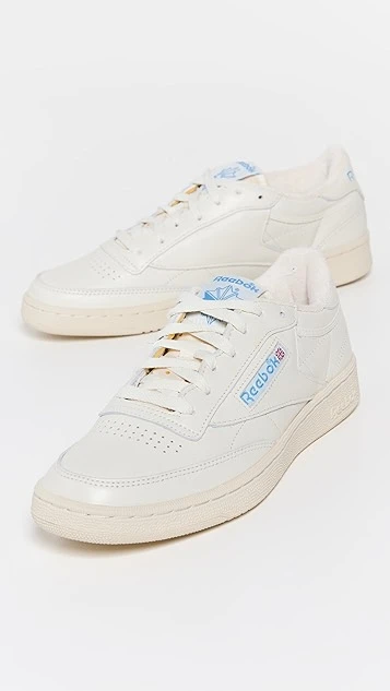 Built for comfort, these classic Reebok sneakers are crafted from sleek, light-colored leather and have a cushioned foam midsole.